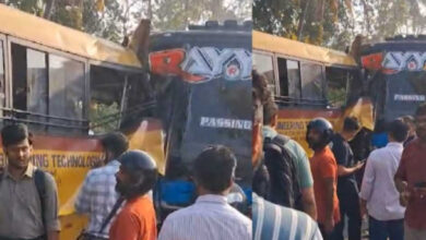 കോളേജ് ബസും സ്വകാര്യ ബസും കൂട്ടിയിടിച്ചു; നാല് വിദ്യാർത്ഥികൾക്ക് പരിക്ക്