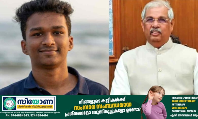 നിതിൻ രാജിന്റെ മരണത്തിൽ ഇടപെട്ട് ഗവർണർ; കോളേജ് അധികൃതർക്കെതിരെ കർശന നടപടിക്ക് നിർദേശം