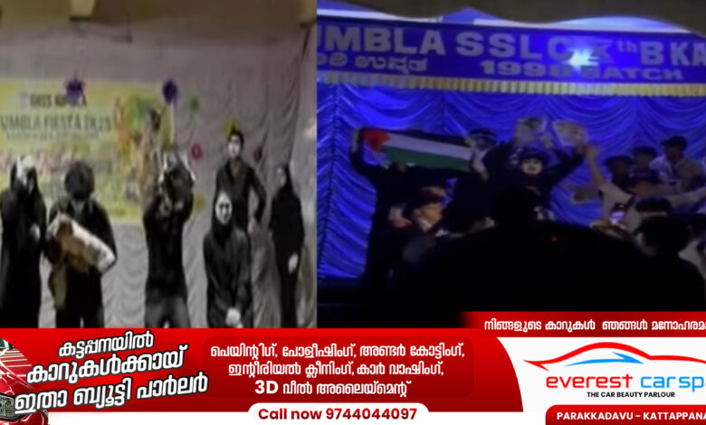 പലസ്തീന് ഐക്യദാർഢ്യം പ്രഖ്യാപിച്ച് മൈം അവതരിപ്പിച്ചതിന്റെ പേരിൽ സ്കൂൾ കലോത്സവം നിർത്തിവെച്ചു.കാസർഗോഡ് കുമ്പള ഗവൺമെന്റ് ഹയർസെക്കൻഡറി സ്കൂളിലാണ് സംഭവം.മൈം അവസാനിക്കുന്നതിന് മുൻപേ അധ്യാപകൻ കർട്ടൻ താഴ്ത്തി എന്നാണ് ആരോപണം. ഇന്നലെയാണ് പലസ്തീന് ഐക്യദാർഢ്യം വിഷയമാക്കി വിദ്യാർഥികൾ മൈം അവതരിപ്പിച്ചത്. പ്ലസ് ടൂ വിദ്യാര്‍ഥികളാണ് മൈം അവതരിപ്പിച്ചത്. എന്നാൽ പരിപാടി ആരംഭിച്ച് രണ്ടര മിനിറ്റ് ആയപ്പോഴേയ്ക്കും അധ്യാപകര്‍ കര്‍ട്ടനിടുകയായിരുന്നു.എന്നാൽ അധ്യാപകർ കർട്ടനിട്ടെങ്കിലും വിദ്യാർഥികൾ വേദിയ്ക്ക് പുറത്ത് മൈം അവതരിപ്പിക്കുകയും മുദ്രാവാക്യം വിളിക്കുകയും ചെയ്തിരുന്നു. ഇന്നലെ ആറ് മണിക്ക് നടന്ന സംഭവത്തിൽ കര്‍ട്ടനിട്ട ഉടന്‍ തന്നെ മറ്റെല്ലാ പരിപാടികളും നിര്‍ത്തിവെച്ചതായും അറിയിപ്പ് നൽകി. ഇന്നും കലോത്സവം തുടരേണ്ടതായിരുന്നു. എന്നാൽ ഇന്ന് പരിപാടി നടന്നില്ല. സംഭവത്തിൽ എംഎസ്എഫ് കുമ്പള സ്കൂളിൽ പ്രതിഷേധവുമായെത്തി. PTA യോഗത്തിലാണ് പ്രതിഷേധം നടക്കുന്നത്. വിഷയത്തിൽ സ്കൂളിലെ അധ്യാപകർ ഇതുവരെ വിശദീകരണം നൽകിയിട്ടില്ല.
