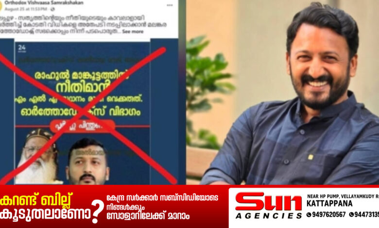 രാഹുല് മാങ്കൂട്ടത്തില് വിഷയത്തില് വ്യാജ പ്രചരണം; പരാതിയുമായി മലങ്കര ഓര്ത്തഡോക്സ് സുറിയാനി സഭ